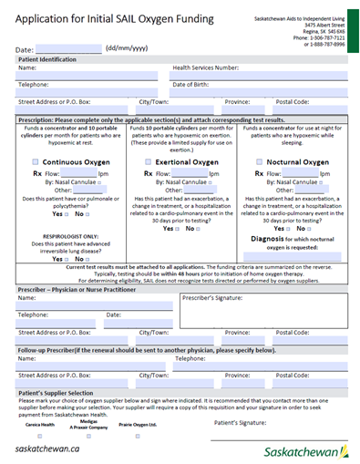 The home oxygen company will ensure the SAIL Home Oxygen applications are signed by the prescribers (MD or NP) and forwarded to SAIL. If the tester has easy access to the prescriber for a signature, testers need to ensure both the results and signed SAIL application are faxed to the home oxygen company. DO NOT SEND RESULTS DIRECTLY TO SAIL. If more urgent service is required (ie. from hospital or emergency room discharge), call the home oxygen supplier directly to arrange prompt delivery of oxygen. For results that do not meet criteria anymore, these should also be forwarded to the home oxygen company AND the physician for discontinuation. |