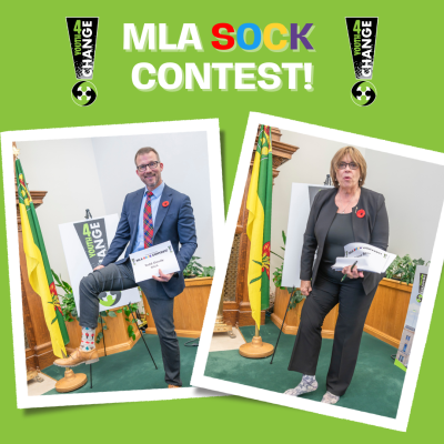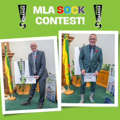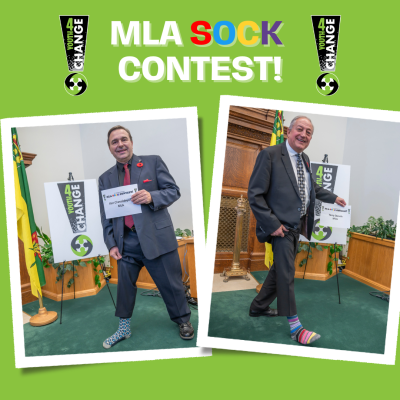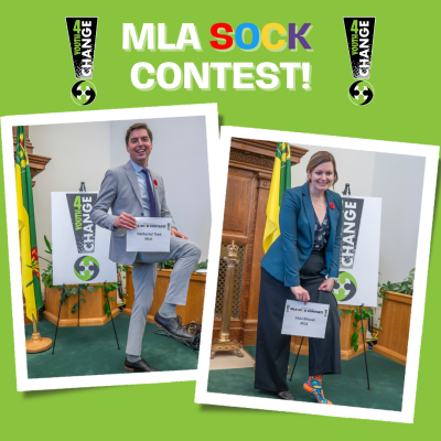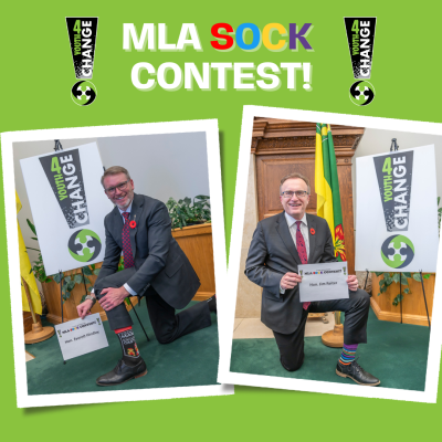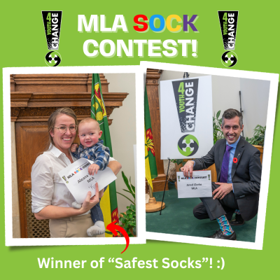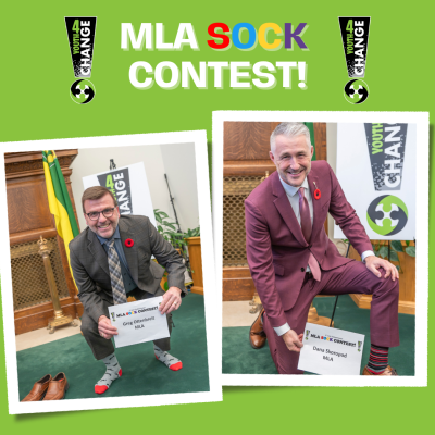 The Youth4Change wanted to have some fun during the last visit to the legislature so they decided to challenge the MLA's to a "MLA Sock Contest"! Honourable Paul Merriman was declared the winner with over 50% of the votes with his 'selfie socks'!
